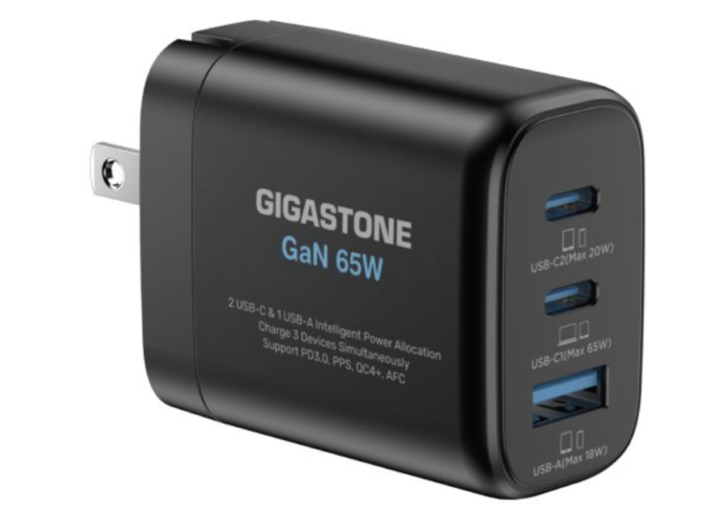GIGASTONE 65W GaN充電器:三孔設計的全能快充解決方案